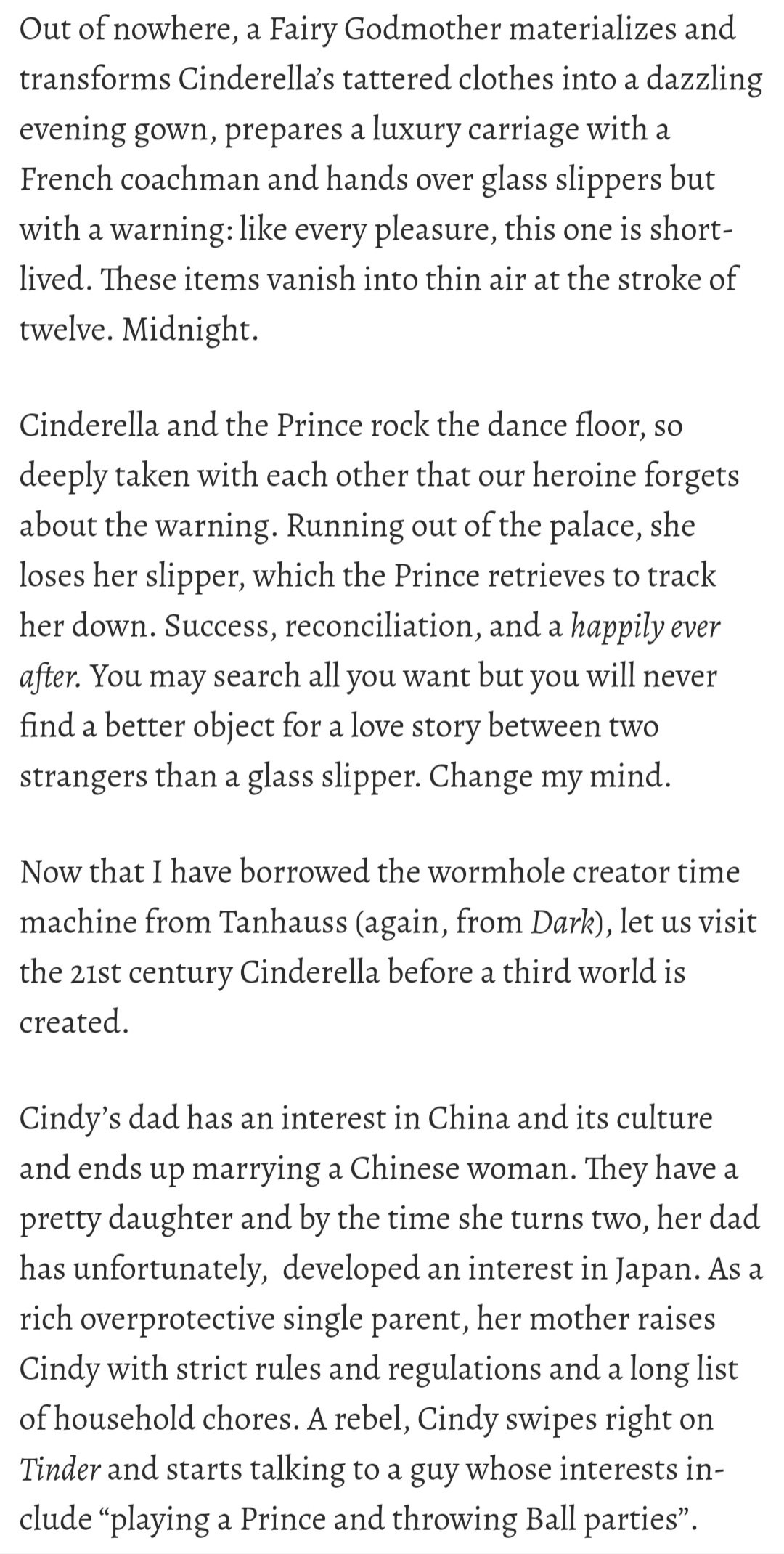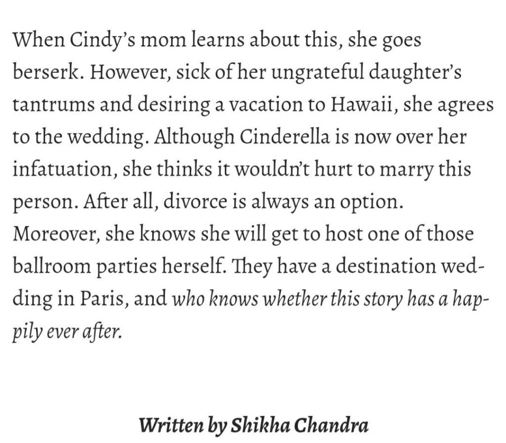 Happily Never After The Glass Slipper Posted by Shikha on 5th Oct 20205th Oct 2020 These SSs are from my column published in Jabberwock magazine. Share this: Share on X (Opens in new window) X Share on Facebook (Opens in new window) Facebook Like Loading... Related